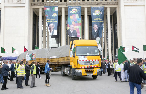 Initiée par l’Union générale des travailleurs algériens (UGTA), le coup d’envoi de la caravane de solidarité a été donné en présence du secrétaire général de l’UGTA, Abdelmadjid Sidi Saïd et du Premier ministre Sahraoui, Abdelkader Taleb Omar. La caravane, rendue possible grâce à la participation d’entreprises nationales publiques et privées, est composée de 25 camions semi-remorques et de fourgons transportant notamment des denrées alimentaires et des médicaments. Une ambulance médicalisée a également été offerte aux réfugiés sahraouis.