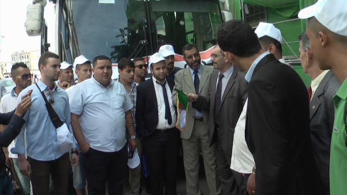 La caravana argelina partió de la sede del Ministerio de la Juventud y Deporte en presencia del Embajador de la RASD en Argelia, Sr. Bachraya Bayùn y funcionarios del Ministerio de la Juventud argelina.