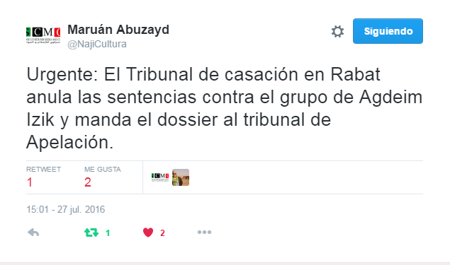 El Tribunal de casación en Rabat anula las sentencias contra el grupo de Gdeim Izik y manda el dossier al tribunal de Apelación #GdeimIzikNulo (primeras noticias)