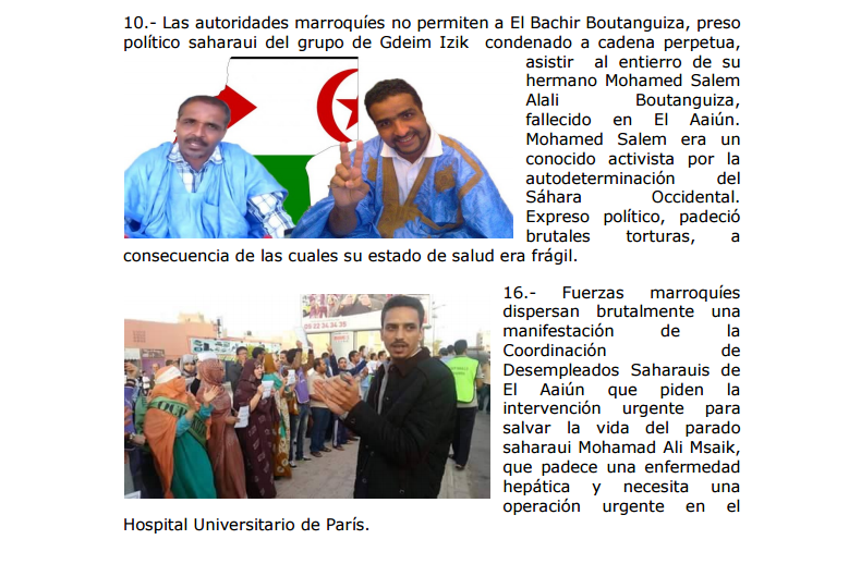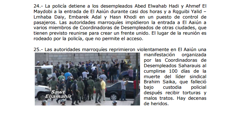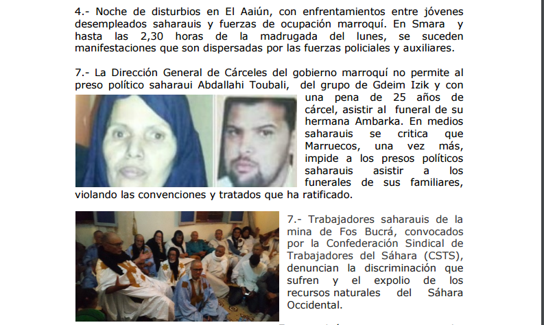 La siguiente es una relación aproximada de hechos ocurridos en julio de 2016 en el Sáhara Occidental bajo ocupación marroquí y ciudades del sur de Marruecos con población saharaui, según datos de organizaciones de Derechos Humanos y medios de información saharauis, tanto oficiales como independientes: