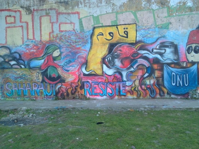 El mural hace un llamamiento a la resistencia de los saharauis contra la ilegal ocupación marroquí y grafica el silencio y el desamparo de la comunidad internacional, así como la complicidad de las potencias coloniales en que no se culmine el proceso de descolonización pendiente desde hace más de cuarenta años en la última colonia de África.(SPS)