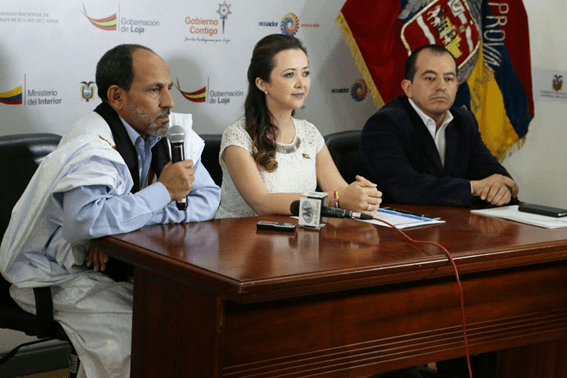 Loja, (Quito, Ecuador), 26/10/16(SPS)-. Con la presencia del embajador de la República Saharaui, en Ecuador Alisalem Sidi Zein, de la primera autoridad de la provincia La Gobernadora Johana Ortiz y de Diego Naranjo Hidalgo, presidente de la CCE-Loja, se desarrolló en la gobernación de la provincia la rueda de prensa para dar realce a la Semana de la Amistad Ecuatoriana Saharaui que se inició este martes en el Auditorio Pablo Palacio de la CCE- Loja.