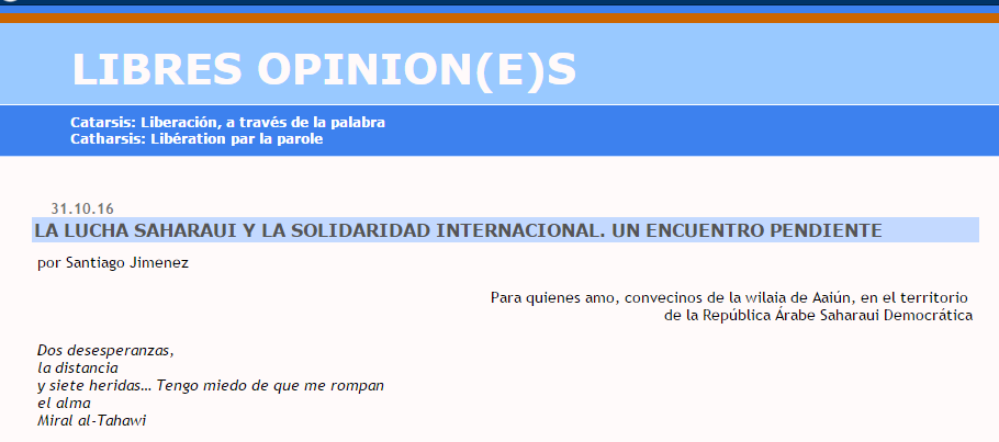 Origen: LIBRES OPINION(E)S: LA LUCHA SAHARAUI Y LA SOLIDARIDAD INTERNACIONAL. UN ENCUENTRO PENDIENTE