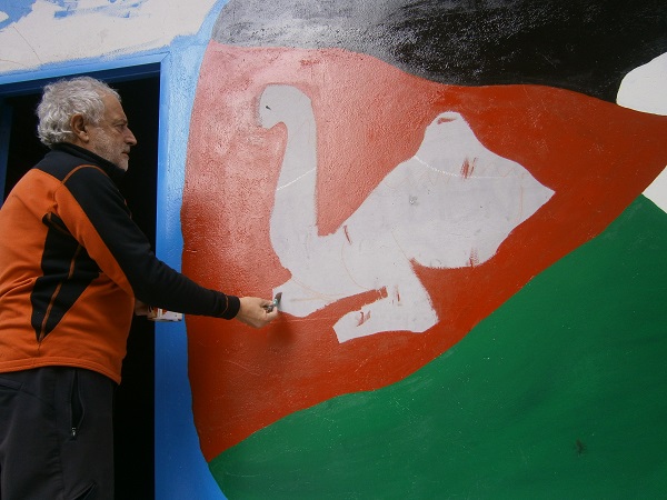 El cooperante mirandés Andrés Araico ha empezado ya a pintar el mural en la fachada de la lonja que amablemente nos ceden para depositar los alimentos recogidos durante la Campaña de Recogida de Alimentos, sita en Carretera Logroño nº 25, y que nos recordará la situación de este pueblo que lleva 40 años de exilio.