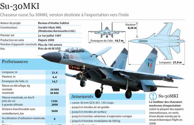Six autres avions de chasse qui sont assemblés à l’usine aéronautique d’Irkoutsk (Sibérie), seront remis à l’armée de l’air algérienne d’ici 2018, indique la même source. C’est, indique le blog bmpd, le troisième contrat sur la livraison de chasseurs russes de ce type à l’Algérie qui dispose déjà dans ses escadrilles 44 Su-30MKI(A).