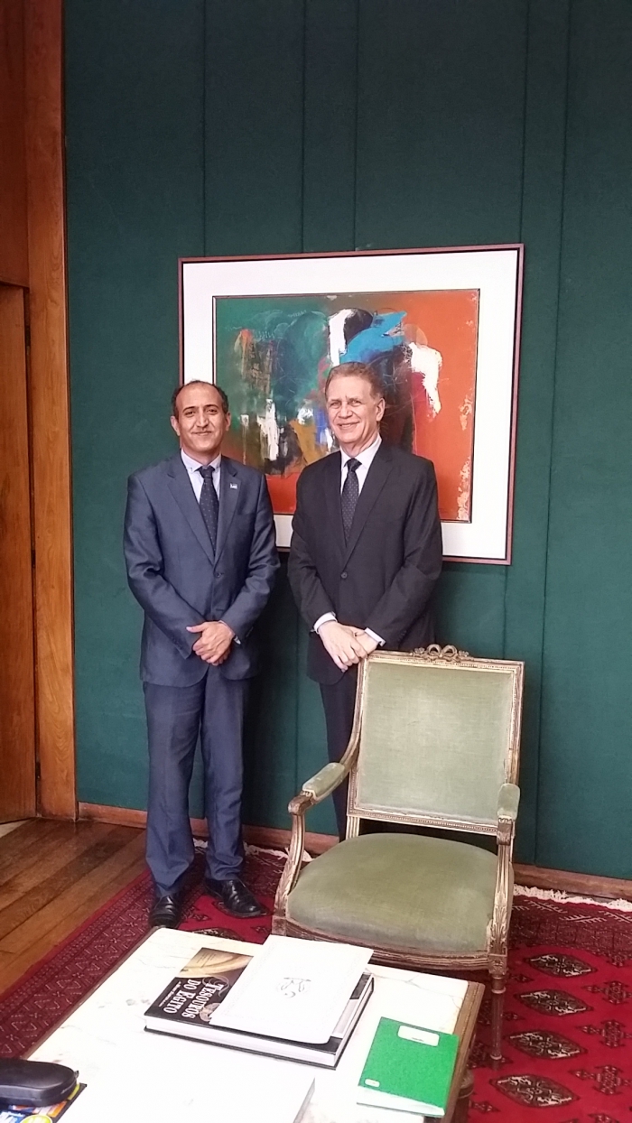 Brasilia ,25 de junio de 2017(SPS)-. El Representante del Frente Polisario para Brasil, Mohamed Zrug, fue recibido en la sede de la cancillería brasileña en Brasilia, por el Excmo. Embajador Fernando Abreu, Subsecretario General del Ministerio de Relaciones Exteriores, la mañana del viernes último, en el marco de su agenda de despedida a las autoridades e instituciones, por la conclusión de su misión en ese Hermano país.