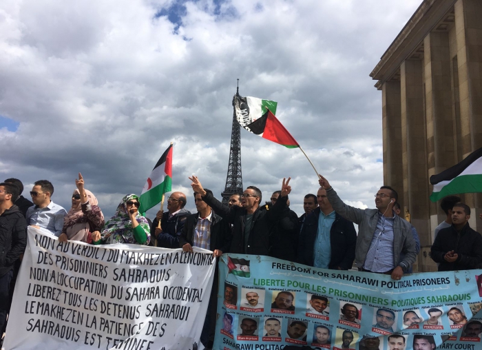 La manifestación que tuvo lugar en la céntrica plaza parisina Trocadero, y a unos metros de la embajada marroquí en Francia, contó con una amplia participación de la diáspora saharaui en Francia y el movimiento solidario francés con la causa saharaui.