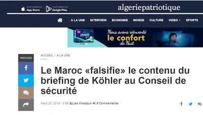 Diario La Realidad Saharaui, DLRSMadrid domingo 25 marzo Marruecos «manipula» el contenido del informe de Köhler presentado a Antonio Guterres.APEl digital argelino Algerie Patriotiqueinformado de una fuente diplomática cercana al dossier del Sahara Occidental en la ONU, que la versión sobre el informe que presentó Horst Köhler al Secretario General de la ONU, su contenido ha…