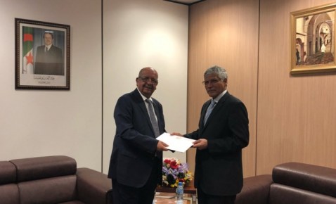 Argel (Argelia), 29/03/2018 (SPS)- El miembro del Secretariado Nacional del Frente Polisario, Abdelkader Taleb Omar, presentó hoy jueves en Argel, ante el ministro de asuntos exteriores argelino, Abdelkader Messahel, una copia de sus credenciales como embajador plenipotenciario de la República Árabe Saharaui Democrática (RASD) en la República de Argelia.