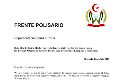 22 de julio de 2019 S.E. Federica Moguerini, Alta Representante de la Unión Europea para asuntos Exteriores y Política de Seguridad Excelencia alta Representante, Me remito a su Excelencia con la urgencia que dictan los graves acontecimientos que tienen lugar en los territorios del Sahara Occidental, ilegalmente ocupados por Marruecos. 79 palabras más