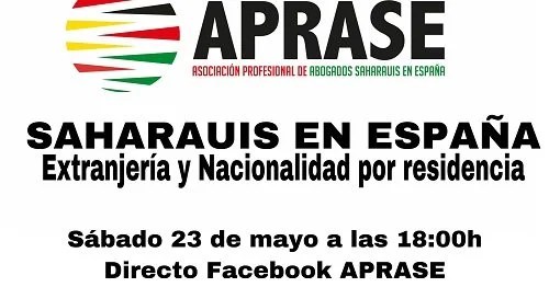 La Asociación de Abogados Saharauis en España –APRASE– organiza conferencia online para abordar el nuevo escenario tras la pandemia de al COVID 19 y sus efecto en la tramitación o renovación de documentos en el Estado español. Hoy a las 18:00 h (Madrid), abogados saharauis estarán en directo para explicar a la comunidad saharaui en […]