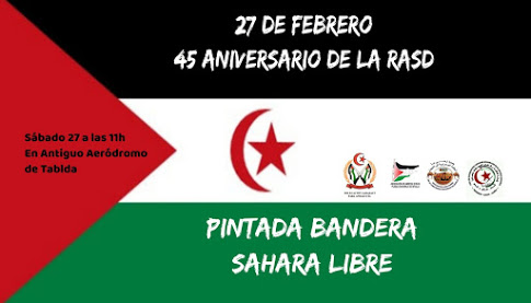 El próximo día 27 de febrero de 2021 y como celebración por el 45 aniversario de la proclamación de la República árabe saharaui Democrática, pintaremos en la pista del antiguo Aeródromo de Tablada en Sevilla una bandera saharaui junto al lema «SAHARA LIBRE» en unas proporciones enormes, de forma que pueda ser visto desde gran…