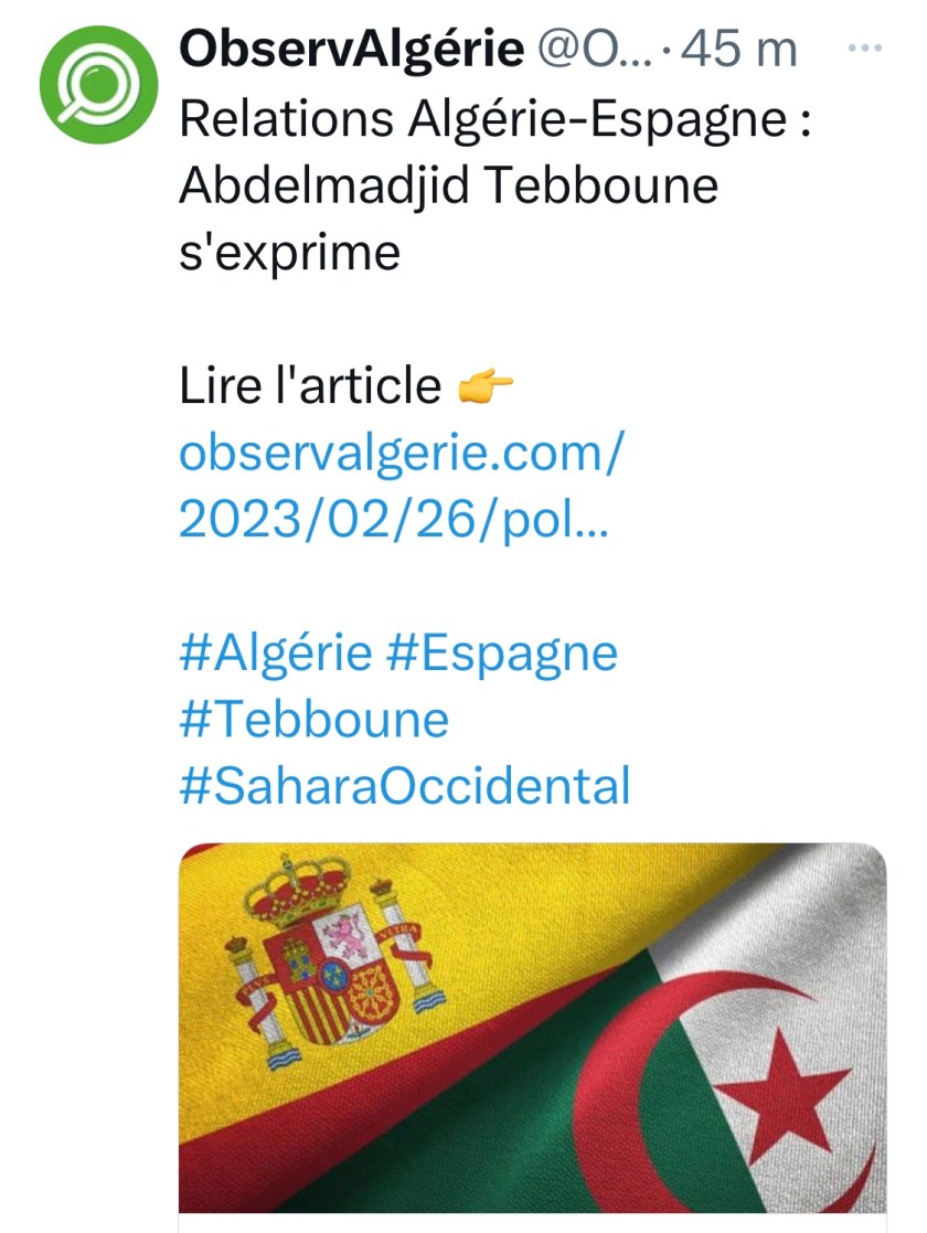 — SEGUIR LEYENDO en observalgerie.com/2023/02/26/politique/relations-algerie-espagne-abdelmadjid-tebboune-exprime/
