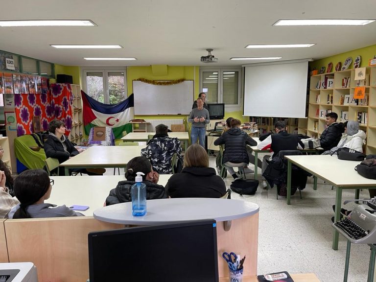 Durante dos días hemos estado en el IES La Granja, de Heras, invitados por su Directora, para hablar a los chavales de 1º de bachillerato sobre el Sáhara, el conflicto saharaui y la vida en los campamentos, y llevarles una pequeña exposición de objetos, libros y fotografías. Y, por supuesto, del Bubisher. Más de cien chicos y chicas, en cuatro charlas con proyecciones, han conocido esa realidad y se han visto sorprendidos a tenor de sus caras y del interés que mostraron con sus preguntas, que hicieron corto el tiempo de las charlas. No nos queda otra que agradecerles su atención y su respeto, al igual que reconocer las facilidades que nos ofrecieron los profesores, el tutor y el equipo directivo para realizar nuestra tarea. Pensamos que caló el mensaje pues a los dos días fuimos convocados de nuevo para empezar a trabajar con las responsables de la biblioteca del centro, cara a iniciar algún tipo de proyecto con alguna de las bibliotecas de los campamentos. A la vuelta de las vacaciones navideñas concretaremos el tipo de colaboración que estableceremos con este centro, conocido en Cantabria por su implicación en todo lo que indique solidaridad y buenas prácticas para sus alumnos. Como dice el diploma que entregamos en nombre de nuestro presidente, Liman Boisha, gracias, comunidad educativa de Heras, gracias por acordaros de nosotros y colaborar a que los niños y niñas saharauis de los campamentos puedan crecer con un libro entre las manos.