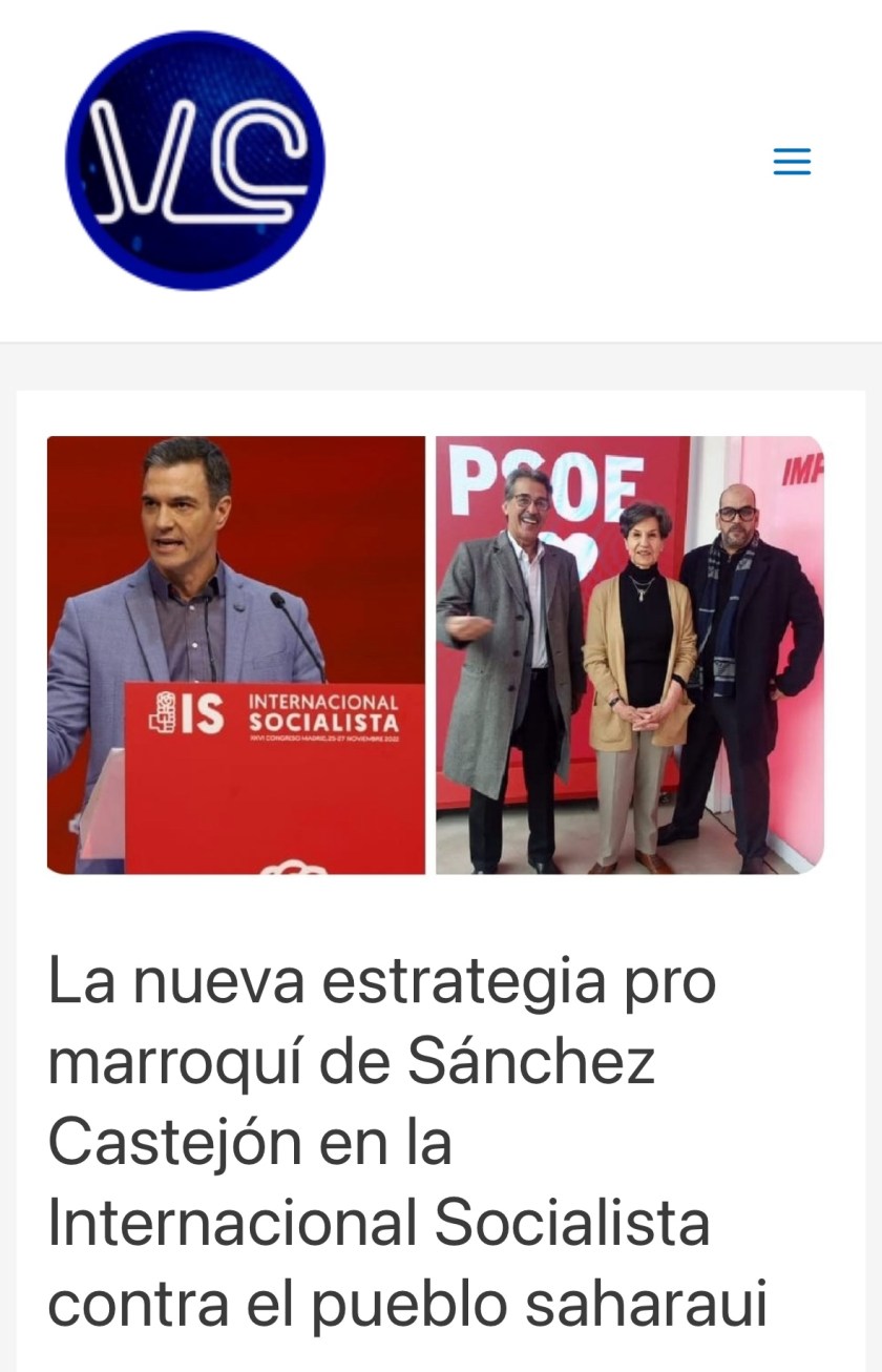 La actual línea de lobby internacional es impulsada activamente por su ministro de Asuntos Exteriores José Manuel Albares y por los viejos y nuevos varones de la cúpula del PSOE conjuntamente con la monarquía marroquí y los partidos y organismos de fachada controlados por el Makhzen en diversos espacios multilaterales internacionales, como la propia Internacional Socialdemócrata y ante los parlamentos multilaterales de integración (como el Parlamento Andino, Parlasur, Parlacen en la región).Se busca una acción concertada contra la legítima lucha por la independencia y la autodeterminación del pueblo saharaui que lidera el Frente Polisario y la RASD, Estado integrante de la Unión Africana. El reciente encuentro de la Internacional Socialdemócrata (IS) se realizó en Madrid, España el pasado 21 de febrero de 2024 y realizó inmediatamente después del viaje de Pedro Sánchez a Rabat, donde reiteró (ante un complacido rey de Marruecos Mohamed VI) su respaldo a la ocupación ilegal del Sáhara Occidental y a la anexión del territorio saharaui que pretende imponer por la fuerza la monarquía marroquí. En el encuentro de la IS, Sánchez Castejón promovió y materializó la destitución de la secretaria general de la Internacional Socialdemócrata, de la ghanesa, Benedicta Lasi, quién lo acusó de ningunearla permanentemente y de conductas de sexismo y racismo en su contra. WR
