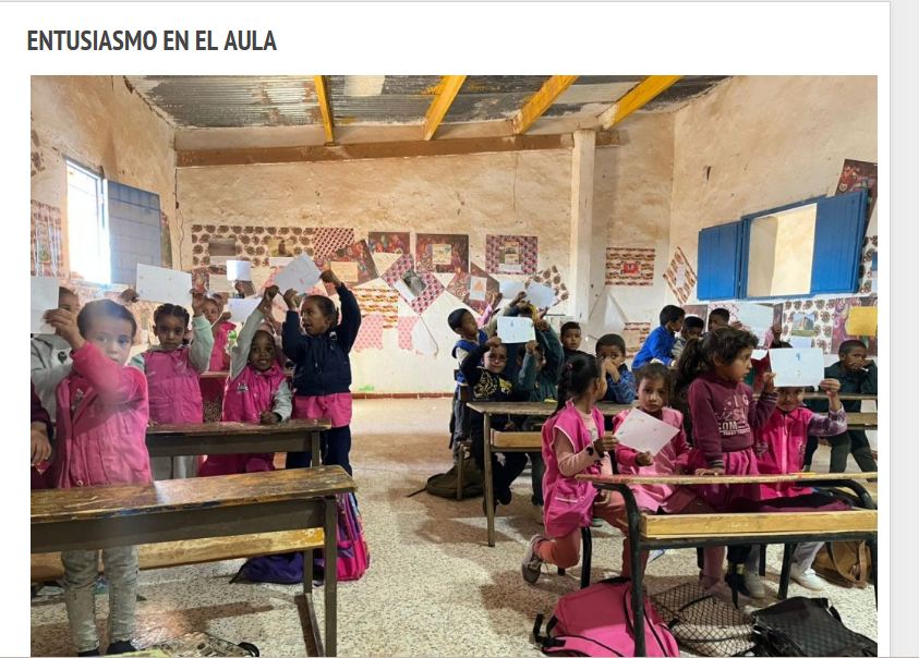 Quien haya estado alguna vez en las aulas de esas escuelas, mientras se desarrolla una clase, no importa de qué materia, ha podido contagiarse del entusiasmo con el que las chicas y los chicos responden a los estímulos, con los que el personal docente procura llamar su atención. Casi todos levantan sus manos para ser los primeros en dar respuesta a una pregunta o para mostrar la tarea encargada, y llevada a cabo, o bien en la propia aula, o bien en la penumbra de la jaima o el beit familiares, en cualquier caso, no en las mejores condiciones, sí cercanas a la peores para cumplir con unas tareas, como las que los escolares pugnan por hacer valer, mostrándolas en alto, para que sean bien vistas y adecuadamente apreciadas.