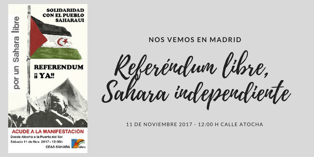 MANIFESTACIÓN #11Nov2017 por un #SaharaLibre #AhoraTocaSahara ✌️🇪🇭🇪🇭 Más de 3.000 personas de todo el estado español han recorrido hoy las calles de Madrid para exigir a la ONU la celebración del referéndum de autodeterminación prometido por la comunidad Internacional al pueblo sharaui desde 1991 y para denunciar la constante falta de respeto de los DDHH […]