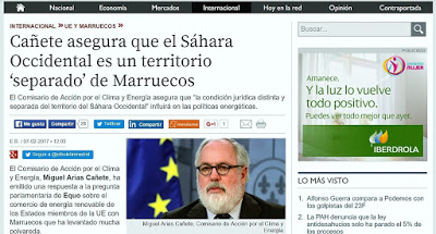 El Comisario de Acción por el Clima y Energía asegura que “la condición jurídica distinta y separada del territorio del Sáhara Occidental” influirá en las políticas energéticas. Despacho que ha difundido hoy por el diario de actualidad y finanza, elboletin.com en su edición 07/02/2017.El Comisario de Acción por el Clima y Energía, Miguel Arias Cañete, ha emitido…