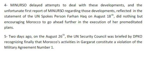 El Señor Ban Ki-moon, termina su informe con un párrafo que suena ya a despedida y en el que recuerda que a pesar de los renovados esfuerzos de todo el sistema de las Naciones Unidas, incluida su actuación personal, persiste la falta de progresos sobre el terreno, la frustración y terribles condiciones de vida de la población refugiada tras la ilegal ocupación de su territorio, al tiempo que reitera a las partes, los Estados vecinos y la comunidad internacional, las responsabilidades que les incumben de hallar una solución al conflicto y promoverla, “por tanto, reitero mi llamamiento a las partes para que avancen hacia una solución sin más demora y, con ese fin, las insto a que entablen negociaciones genuinas con el apoyo y la facilitación de mi Enviado Personal”.