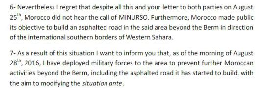 El Secretario General del Frente POLISARIO acogió con agrado estas declaraciones que por más obvias que nos puedan parecer produjeron una reacción por parte de Marruecos que si no fuera por su gravedad, podríamos calificar de infantil y grotesca, acostumbrada como está la tiranía alauí a tratar de convertir a las Naciones Unidas en su patio de recreo y montar el numerito (si se nos permite la expresión) cada vez que las Naciones Unidas recuerdan la situación de ocupación ilegal del territorio.