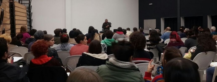 En la tarde de ayer lunes, la delegación cultura efectuó una conferencia/debate sobre la cultura y la cinematografía saharaui en la faculta de Bellas Artes perteneciente a la Universidad de la República y a continuación se proyectaron películas cortos de producción de la Escuela de Formación Audiovisual Abidin Kaid Saleh (SPS)