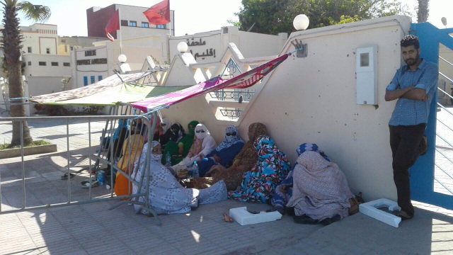 “Je suis native de cette région, divorcée et moi et mes petits enfants, nous n’avons aucun abri” disait Salma, l’une des protestants sahraouis “on n’a jamais bénéficié d’un logement, ni un bout de terre sur lequel je peux construire une maison. Notre terre est confisquée et donnée à des marocains qui n’ont jamais entendu par Mhairiz jusqu’au moment où ils ont été apportés par le Makhzen pour peupler notre terre” s’indignait-elle dans un témoignage poignant avant que le ton de sa voix soulève en signe de protestation “à chaque moment où je tape sur la porte d’un responsable, il refuse de m’accueillir. Je suis sahraouie et, en sus, je suis pauvre; deux motifs suffisants pour me chasser en dehors”