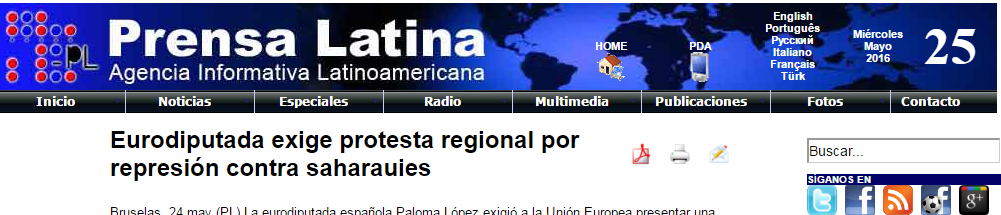 Prensa Latina: Eurodiputada exige protesta regional por represión contra saharauies