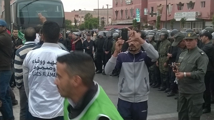 Las fuerzas de ocupación marroquíes reprimen una sentada pacifica de los Parados saharauis en el Aaiún ocupado