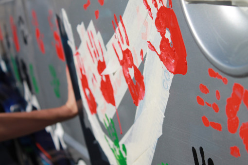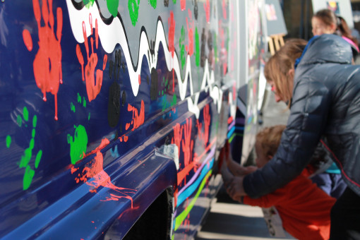 Euskal Trenbideetako Langileak Mugarik Gabe elkarteak, berriz, otsailean kanpalekuetara eramateko autobus bat lortu du, eta lasterketa amaitu ostean autobusa margotzea izan da korrika egin dutenentzat saria. Haurrak gustura aritu dira eskuak sahararren koloreekin busti eta autobusa margotzen.