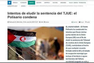 Diario la Realidad Saharaui, DLRSIntentos de la Comisión Europea de eludir la sentencia del TJUE respecto a la exclusión de los terriorios del Sahara Occ ocupados por Marruecos: el Polisario lo condena. ApsChahid El Hafed – APS.DZ El Frente Polisario ha condenado los intentos que llevan ciertas partes dentro de la Unión Europea (UE) con el fin…